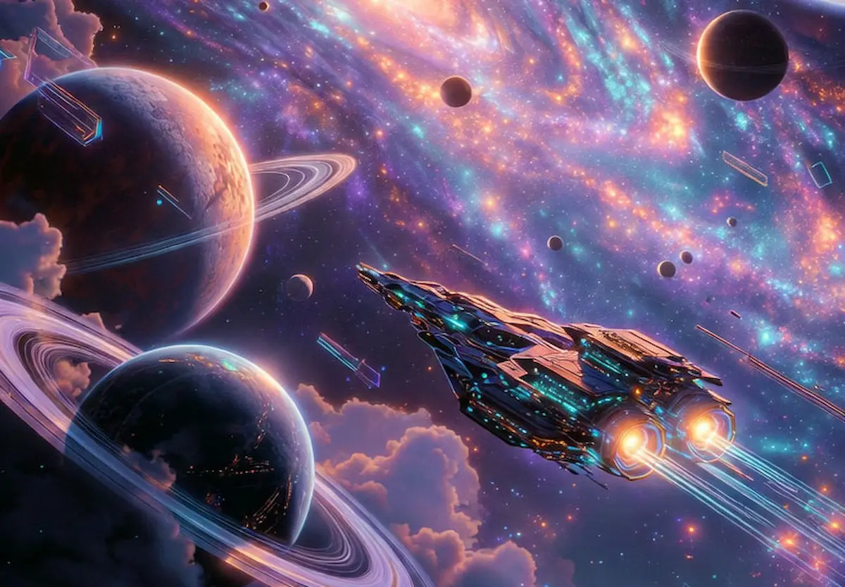 Genau hier kommt Künstliche Intelligenz ins Spiel. Tools wie Midjourney, Stable Diffusion oder DALL-E erzeugen in Sekunden diese Extra Celestial Bilderwelten von schimmernden Planeten, holografischen Portalen, außerirdischen Wesen in opulentem Glanz.